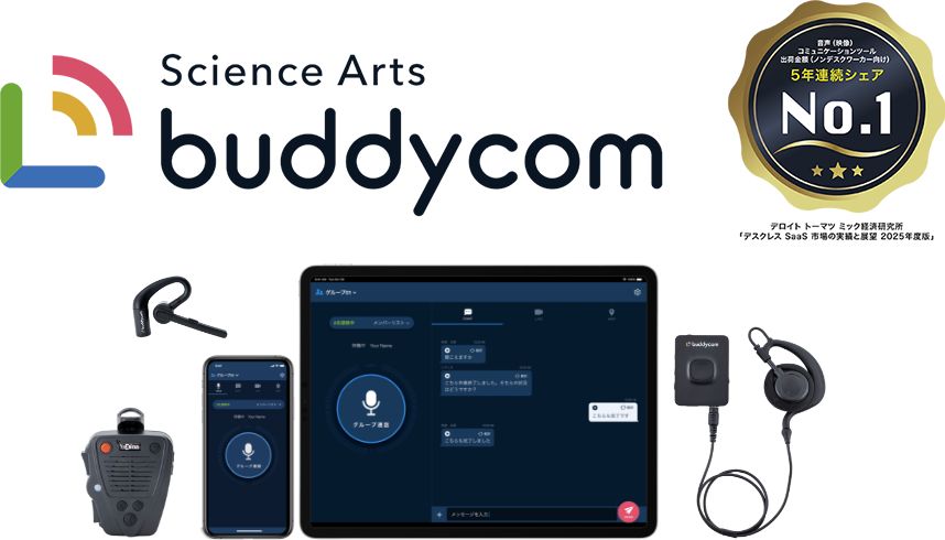 「Buddycom」は音声グループ通話ができる、次世代トランシーバーアプリ(SaaSサービス)です。